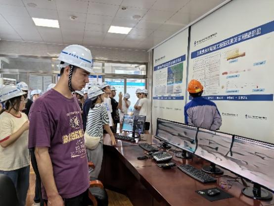 王甫洲水电站属于低水头径流式电站,为汉江梯级开发电站之一,是丹江口水电站的反调节水库。在现场工程师的带领下,我们参观了泄水闸、船闸、自动化机房和中央控制室等运行及管理功能区域,深刻理解了水电站的智能化管理及运作方式的必要性。期间,学生们针对讲解过程中水位消落、供水安全、电网保供及电厂机组检修计划等新知识进行了请教,工程师逐一认真地给予了详细解答,配合带队老师的补充,实现了课本知识与应用技能的链接。