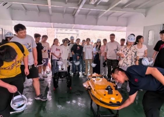 黄家港水文站上,张站长介绍了水文站的功能以及日常工作,不仅给我们展示了之前水文测验中用到的传统水文测验方法,还为大家现场演示了现代水文监测设备,如无人机,无人船等如何进行水位、流量,水质、泥沙等数据监测与处理分析。通过与现场交流,学生们理解了水文工作的重要性,同时也明确了当代水文一线监测人才的新能力需求,为后续就业及能力拓展提供了明确的方向启迪。